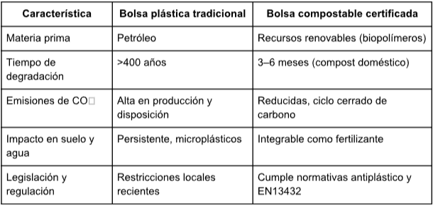 Insight: Si cada hogar adoptara bolsas compostables certificadas, se reduciría significativamente la presión sobre vertederos y ecosistemas acuáticos, además de fomentar hábitos sostenibles a largo plazo.